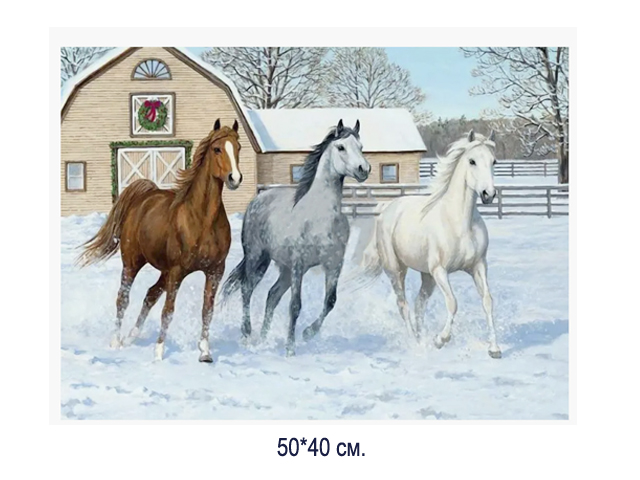 Алмазная мозаика арт. GLE76312/MD5112 Лошади 40*50 полная выкладка на подрамнике