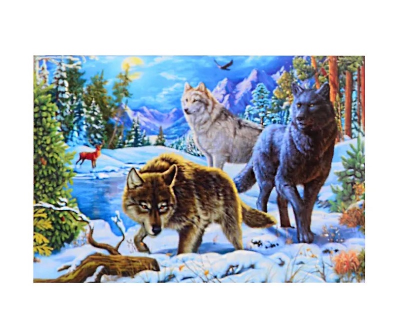 Алмазная мозаика арт. GLE81234 Волки в лесу 40*50 полная выкладка на подрамнике
