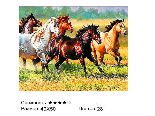 Алмазная мозаика арт. MD5106 Лошади 40*50 полная выкладка на подрамнике