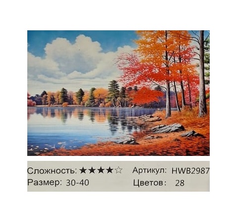 Алмазная мозаика арт. HWB2987 Осенний пейзаж 30*40 полная выкладка на подрамнике