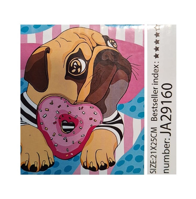 Алмазная мозаика арт. JA29160 Милашка мопс 21*25 не полная выкладка на картоне