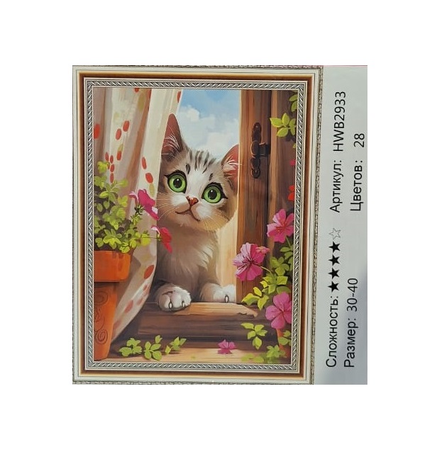 Алмазная мозаика арт. HWB2933 Любобытный котенок 30*40 полная выкладка на подрамнике