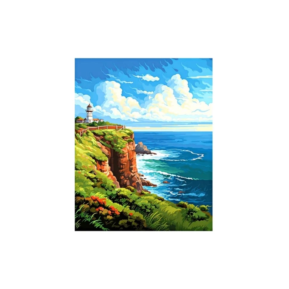 Алмазная мозаика арт. HWB2889 Маяк на скалистом берегу 30*40 полная выкладка на подрамнике