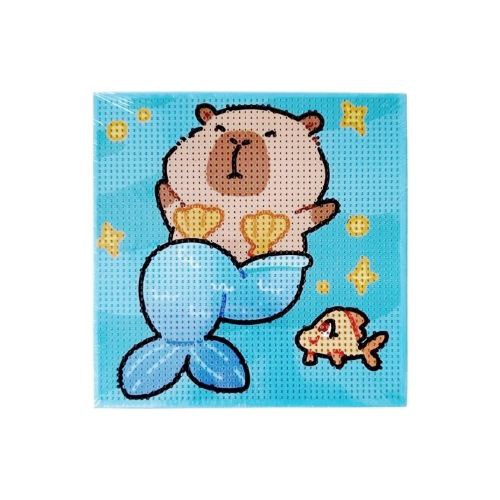 Алмазная мозаика арт. KP2010-209 Капибара-русалка 20*20 на подрамнике в пак.