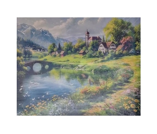 Алмазная мозаика арт. GLE79566 Деревушка у реки 40*50 полная выкладка на подрамнике