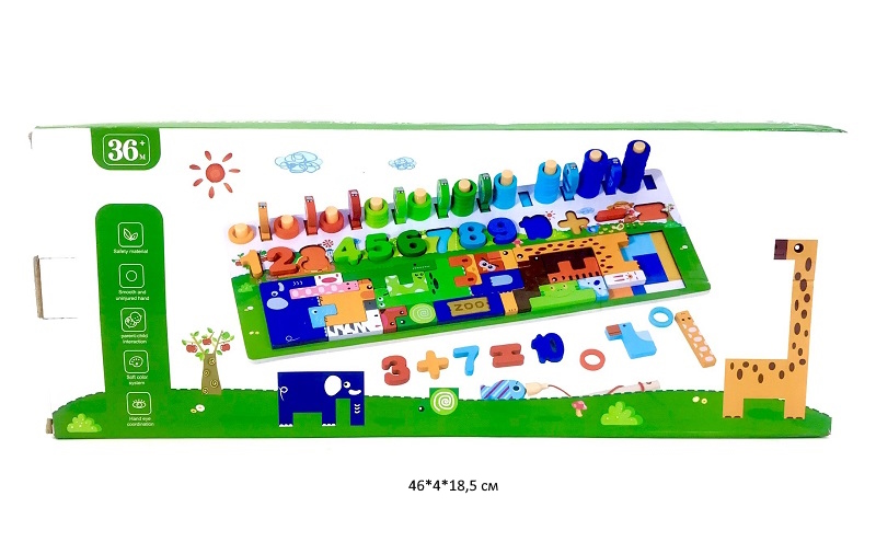 Игрушка прекрасно развивает мелкую моторику, глазомер, познакомит ребенка с цыфрами и арифметическими знаками. Благодаря объемности вкладок, ими также можно играть как отдельными цыфрами фигурками.
