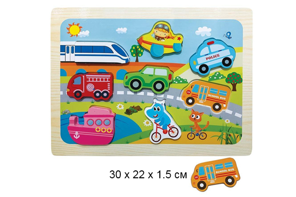 Размер: 30 х 22 х 1,5 см228.28 руб. - Деревянная игрушка арт.1902-74 Транспорт в пленке.)×Деревянная игрушка арт.1902-74 Транспорт в пленке.)Вкладыши-фигурки "Транспорт" - очень интересная игра, способствующая развитию способности концентрировать внимание, мелкой моторики и сообразительности. Она сделана из натурального эко-материала, а поэтому полностью безопасна для детей.