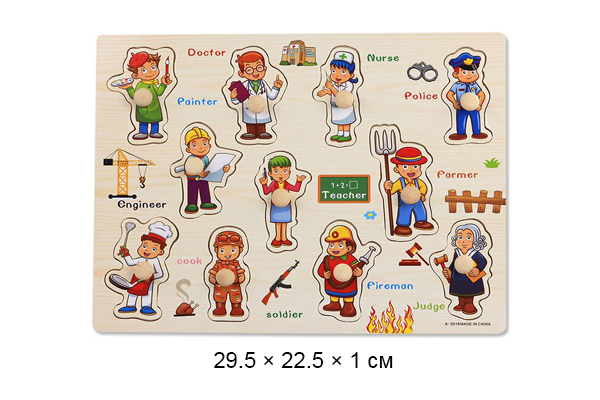 375.07 руб. - Деревянная игрушка арт. 1902-12 Люди разных профессий в пленке)×Деревянная игрушка арт. 1902-12 Люди разных профессий в пленке)Рамка-вкладыш - это многофункциональная обучающая игрушка, которая поможет развить пространственное мышление, внимание, мелкую моторику рук, научит различать предметы по формам и цветам, расширит кругозор.