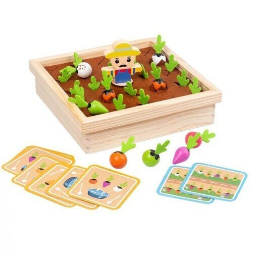 1 083.54 руб. - Деревянная игрушка арт. 1902-83 Логика "Огород" в кор.)×Деревянная игрушка арт. 1902-83 Логика "Огород" в кор.)Деревянная игра сортер "Огород" предназначена для развития логики и внимания. На грядках растут 24 штуки разных овощей, а по центру доски находится сам фермер. Суть игры в том, чтобы малыш рассадил овощи на грядках, и развивая свою память, логику и мышление, вспомнил куда и что посадил.