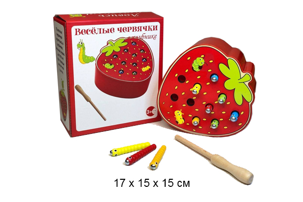 711.07 руб. - Деревянная игрушка арт. 1092-39/1902-39 Веселые червячки в клубнике в кор.)×Деревянная игрушка арт. 1092-39/1902-39 Веселые червячки в клубнике в кор.)Игра состоит из деревянной клубники с десятью отверстиями, где прячутся разноцветные червячки с металлическими головками. Чтобы поймать их, малышу нужно воспользоваться палочкой-удочкой с магнитным наконечником. Червячки выполнены из дерева и представлены в 5 разных цветах, по 2 шт. каждого цвета.