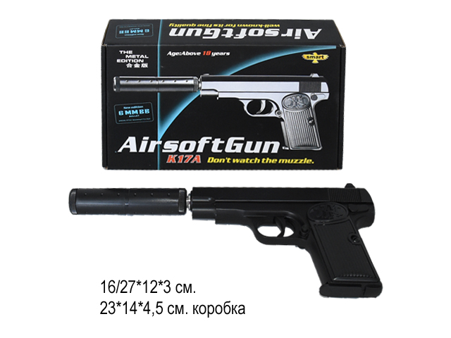 Пистолет пневматика арт. K17A С глушителем, металл 1шт. в кор._=/36шт./