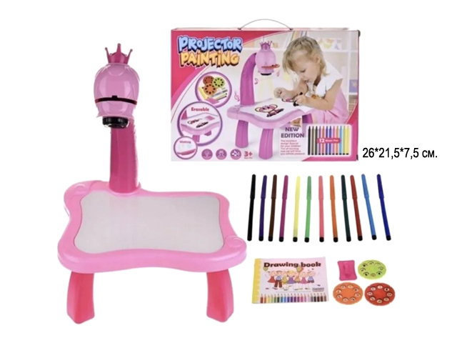 В наборе: 12 маркеров на водной основе, бумага для рисования, световой проектор, и тряпочка для очистки столика.