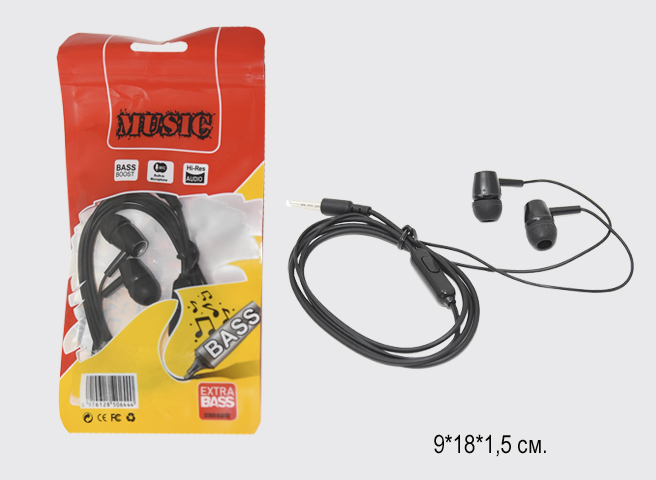 - Наушники арт. 506444-2 MUSIC BASS проводные черные в пак.×Наушники арт. 506444-2 MUSIC BASS проводные черные в пак.Проводные наушники Вкладыши Jack 3,5 с микрофоном и регулятором громкости универсальны, ведь подходят для любого типа телефона, планшета, ноутбука, аудиоприемника, и вообще всего, что может работать с наушниками. Это отличный спутник в дороге, на прогулке или за рабочим столом. Форма наушников сделана специально под ушную раковину. Это обеспечивает плотную фиксацию и высокую надёжность. Вам больше не нужно будет думать о том, что наушник выскочет или выпадет.