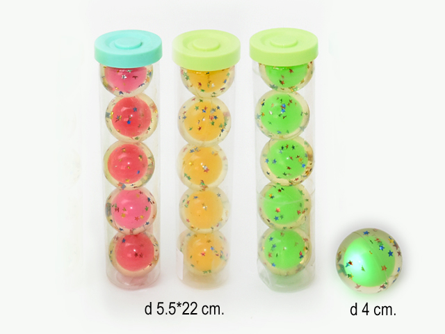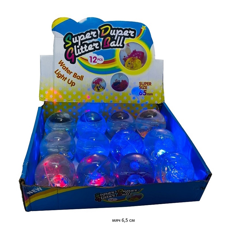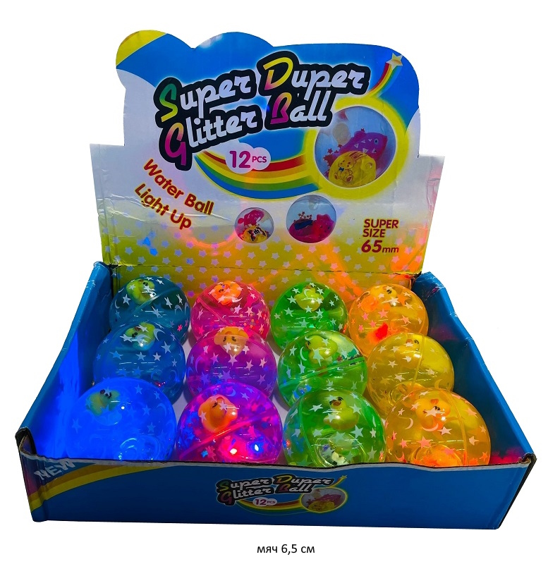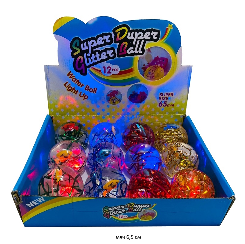 Мяч каучук. арт. 2557-4 Прозрачный блестки, свет 6,5 см (12 шт.) шоубокс•