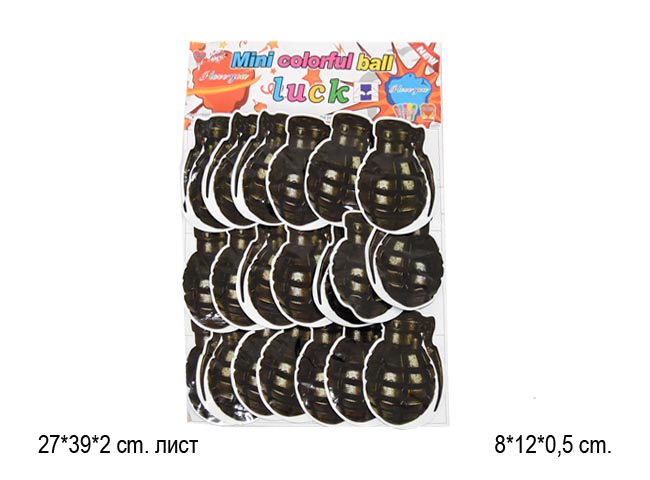 Бомбочки арт. WJ-6/1-40A Граната лимонка цветная 40 шт. на листе=