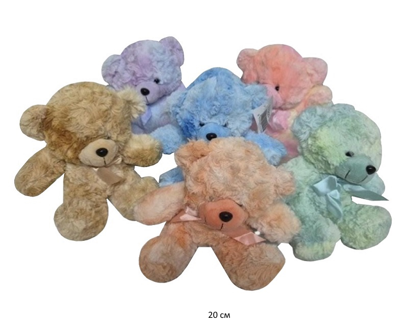 им Медведь арт. 209183 Пестрый с бантом на ухе 20 см цвета микс в пак.