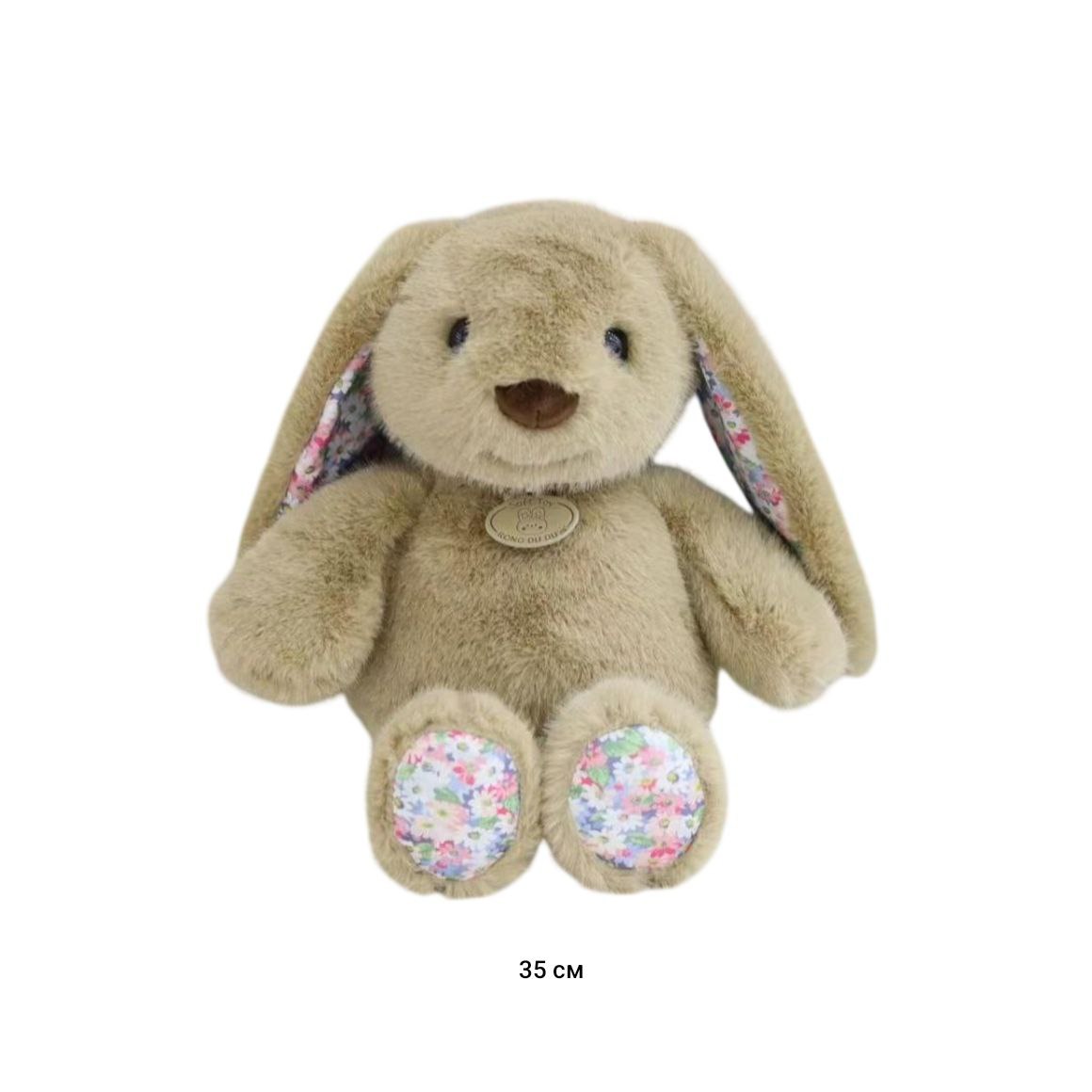 им Зайка арт. YE251025-5-1 Вислоухий коричневый с медальоном и цветочными вставками 35 см в пак.)
