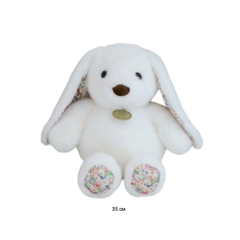 им Зайка арт. YE251025-5-2 Вислоухий белый с медальоном и цветочными вставками 35 см в пак.)