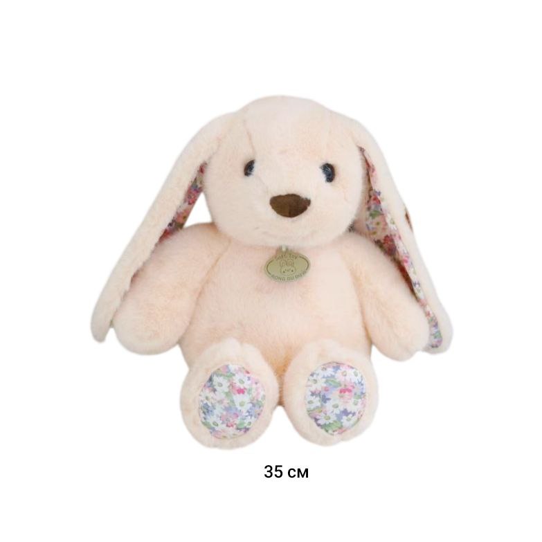 им Зайка арт. YE251025-5-4 Вислоухий персиковый с медальоном и цветочными вставками 35 см в пак.)