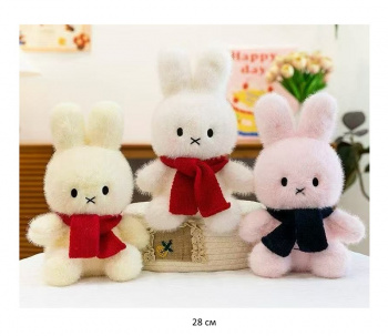 им Зайка арт. DYB-2026-12 Пестрый бежевый в вязанном шарфе 46 см в пак._