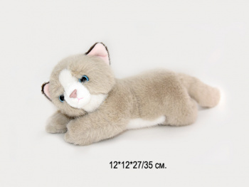 им Кошка арт. 209975/BO-2-30-3 Темно-серая с белым лежит 30 см в пак._