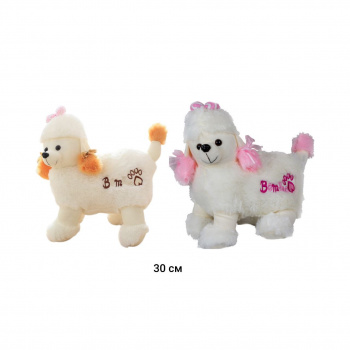 им Собака арт. 209325 Пудель Брелок Гнущийся в банте с бусами 20 см в пак.