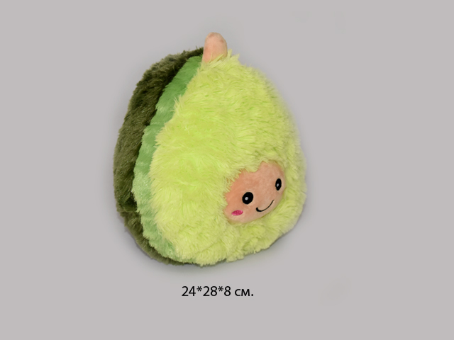 Мягкая игрушка в виде улыбающегося авокадо. Имеет очень приятный на ощупь материал. Благодаря своей форме, может использоваться не только как игрушка, но и как мини-подушка. Красиво дополнит любой интерьер.