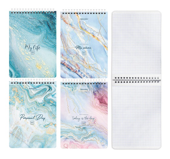 кс_Блокнот арт. 114360 А5 (146х206 мм), 60 л. гребень, картон, клетка BRAUBERG "Мрамор"кс_Блокнот арт. 114360 А5 (146х206 мм), 60 л. гребень, картон, клетка BRAUBERG "Мрамор"