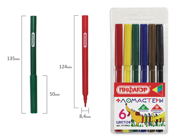 - кс_Фломастеры арт.151089 ПИФАГОР, 6 цветов, вентилируемый колпачок×кс_Фломастеры арт.151089 ПИФАГОР, 6 цветов, вентилируемый колпачокНабор фломастеров с чернилами на водной основе. Практичные и безопасные. Яркие и насыщенные цвета. Вентилируемый колпачок не причинит вреда при попадании в дыхательные пути. Фломастеры упакованы в прозрачный футляр с европодвесом. Нетоксичные.