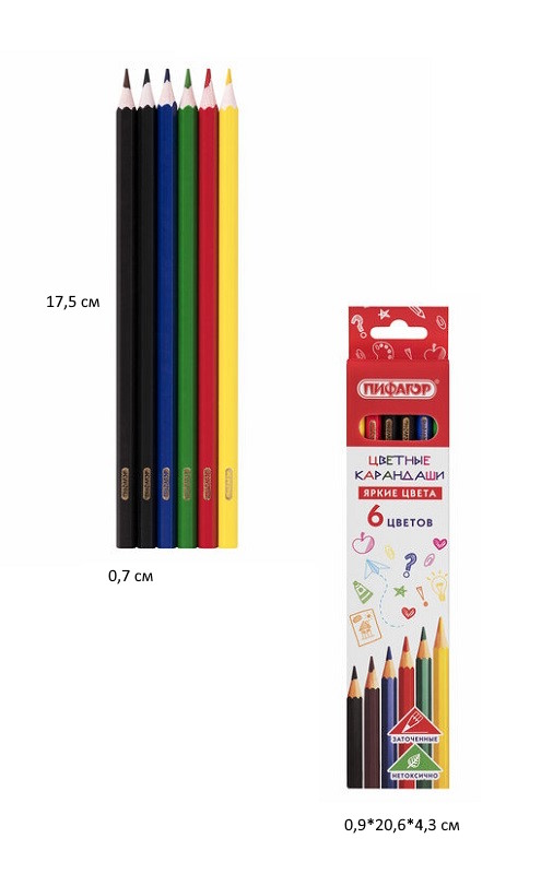Карандаши цветные арт. 182047 ПИФАГОР ЭКО "КЛАССИК", 6 цветов, шестигранныеКоличество цветов: 6 шт.