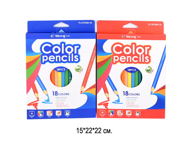 кц_Карандаши цветные арт. YL221036-18 Набор 18 цветов с ластиком в кор.