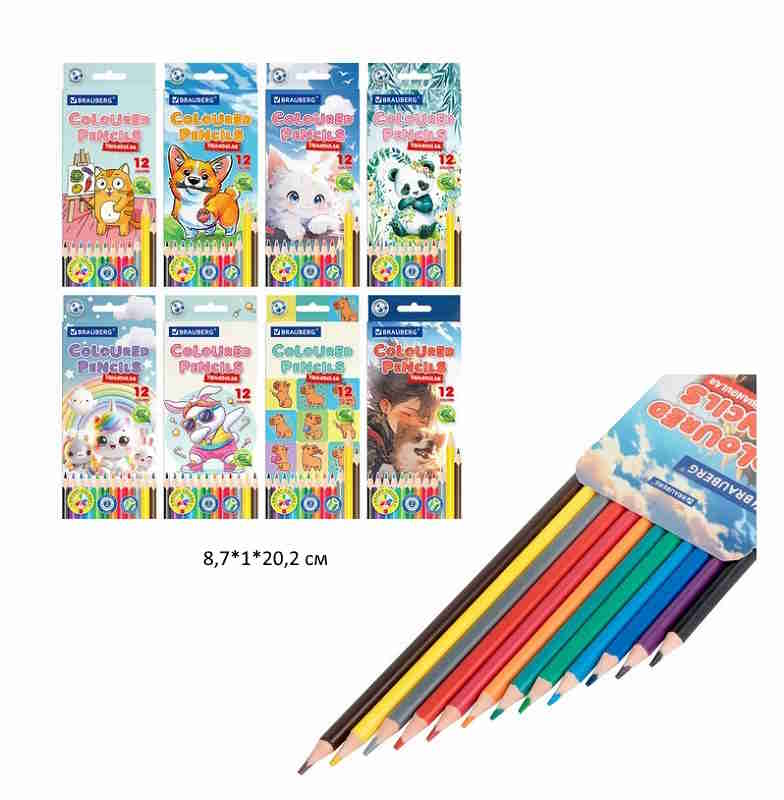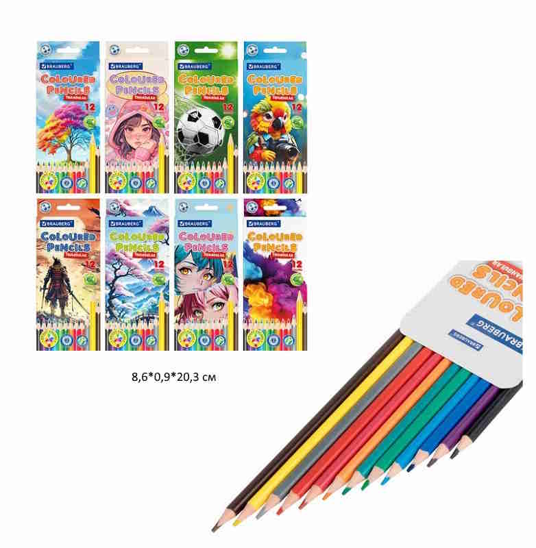 кс_Карандаши цветные арт. 182056 "АССОРТИ 8 ДИЗАЙНОВ 7-14 лет" 12 цв. трехгранные BRAUBERGКоличество цветов: 12 шт.