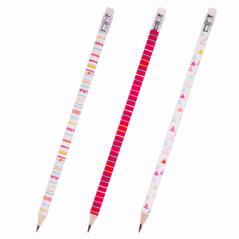 Карандаш чернографитный ЮНЛАНДИЯ "ГЕОМЕТРИЯ", 1 шт., HB, с ластиком, корпус ассорти, 181775