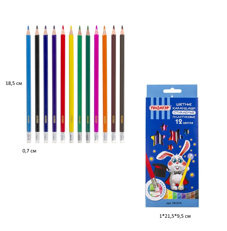 кс_Карандаши цветные арт. 181574 Стираемые с ластиком ПИФАГОР "МАГИЯ", 12 цветов, шестигранныеКоличество цветов: 12 шт.