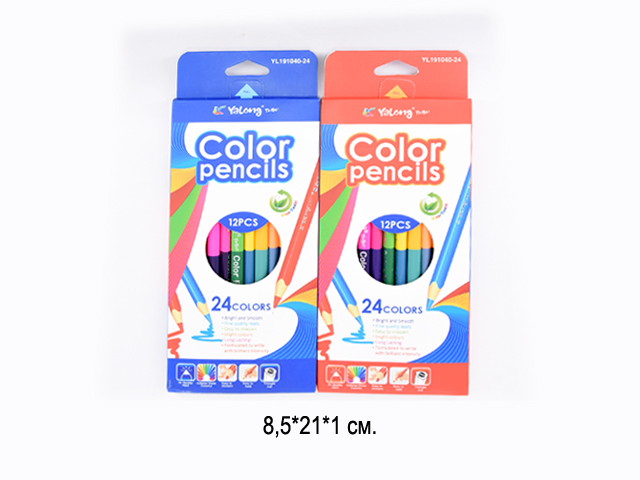 кц_Карандаши цветные арт. YL221036-24 Набор 24 цвета с ластиком в кор.