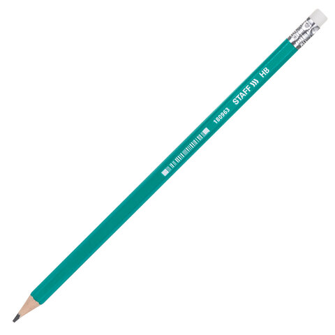 Карандаш чернографитный STAFF "EVERYDAY" BLP-963, 1 шт., НВ, с ластиком, пластиковый, зеленый корпус