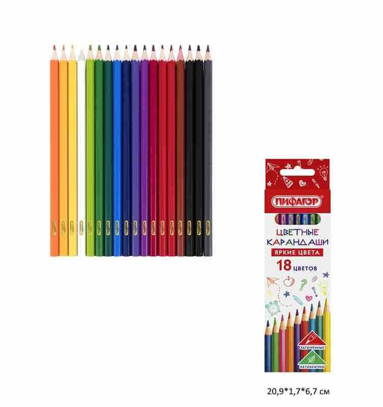 кс_Карандаши цветные арт. 182049 ПИФАГОР ЭКО "КЛАССИК" 18 цветов, шестигранныеКоличество карандашей: 18 шт.