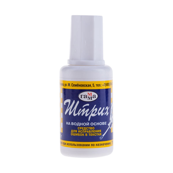 Флакон с кисточкой. Отлично наносится, подходит для корректировки любого вида текста. На водной основе. Не токсична.