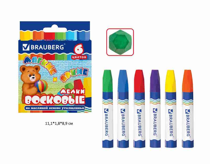 кс_Восковые мелки утолщенные арт. 222969 BRAUBERG НАБОР 6 цв. на маслян.основе яркие цветаТип основы: масляная основа