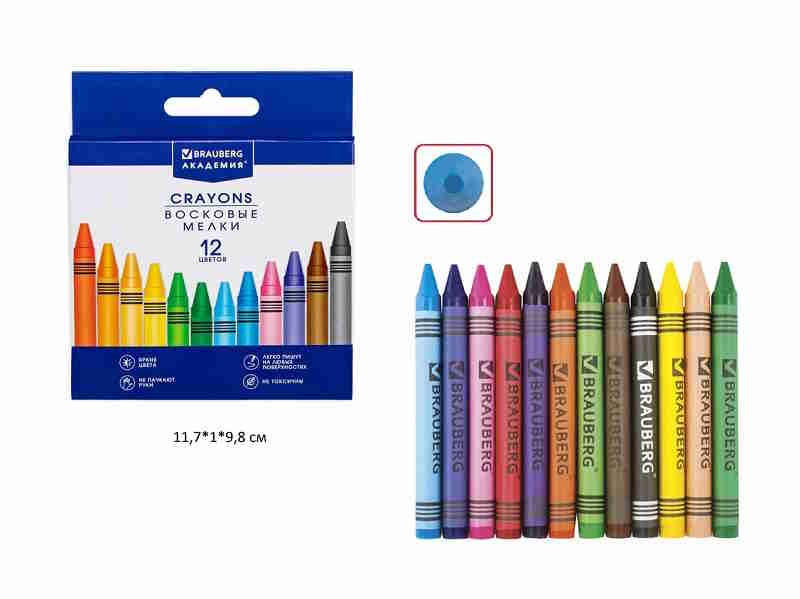 кс_Восковые мелки арт. 227283 BRAUBERG "АКАДЕМИЯ" НАБОР 12 цветовТип основы: восковая основа