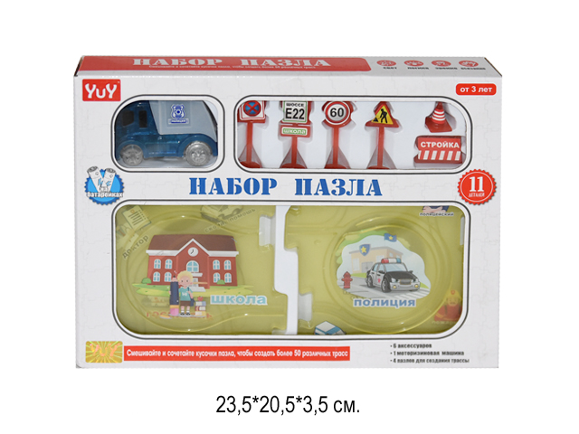 858.96 руб. - Пазл арт. 7167B Набор для создания различных трасс 11 дет. в кор.=×Пазл арт. 7167B Набор для создания различных трасс 11 дет. в кор.=Набор состоит из нескольких больших деталей пазла, которые можно соединять в разном порядке, чтобы каждый раз получались новые трассы, а так же машинки (со световыми эффектами) и дополнительных аксессуаров в виде дорожных знаков.
