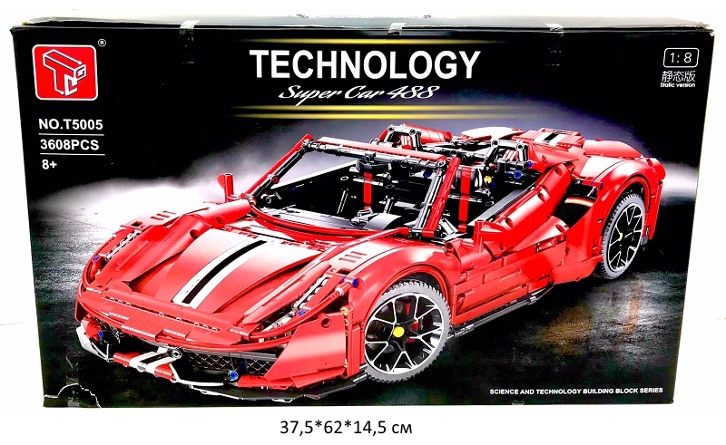 - Конструктор арт. T5005 Автомобиль 3608 дет. в кор._/9 шт./×Конструктор арт. T5005 Автомобиль 3608 дет. в кор._/9 шт./Точная копия CADA Ferrari 488 - техническое совершенство, точность форм и мельчайших деталей.