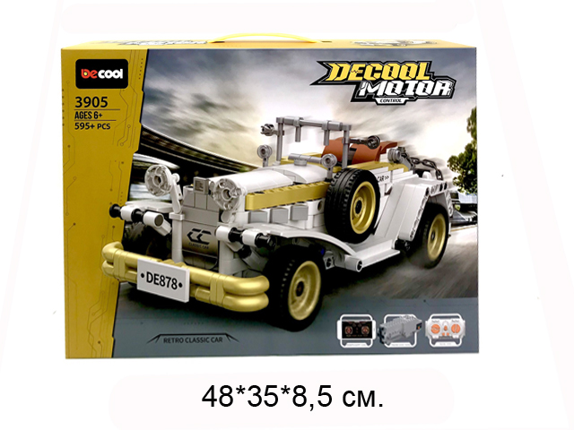 Машинка конструктор оснащена электродвигателем и пультом управления, имеет высокую детализацию кузова. Преимущество данной модели в аккумуляторе, который можно перезаряжать, подключив к специальному зарядному кабелю, в отличии от недолговременной батарейки. Открыв дверь, можно заглянуть в салон машины, чтобы рассмотреть место водителя. Подвижные элементы: двери, капот, руль. Машинка сильно детализирована, а приводы построены на дифференциалах и шестеренках. Набор электроники идет в комплекте, поэтому, собрав автомобиль, вы получите машинку на радиоуправлении. С помощью подробной инструкции даже ребенок соберет его в кратчайшие сроки без помощи мамы или папы.