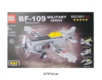 Размер упаковки: 15,5 х 14 х 4,5 см209.76 руб. - Конструктор арт. A010-5 Военная техника 82 дет. в кор.~×Конструктор арт. A010-5 Военная техника 82 дет. в кор.~Конструктор военный самолет 3 в 1 из которого можно так же собрать истребитель и пушку.