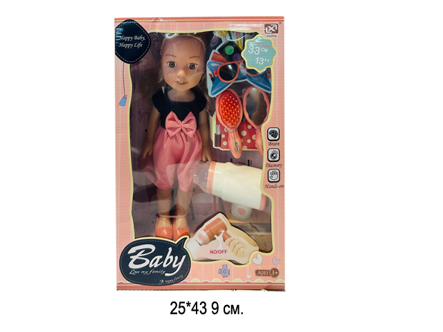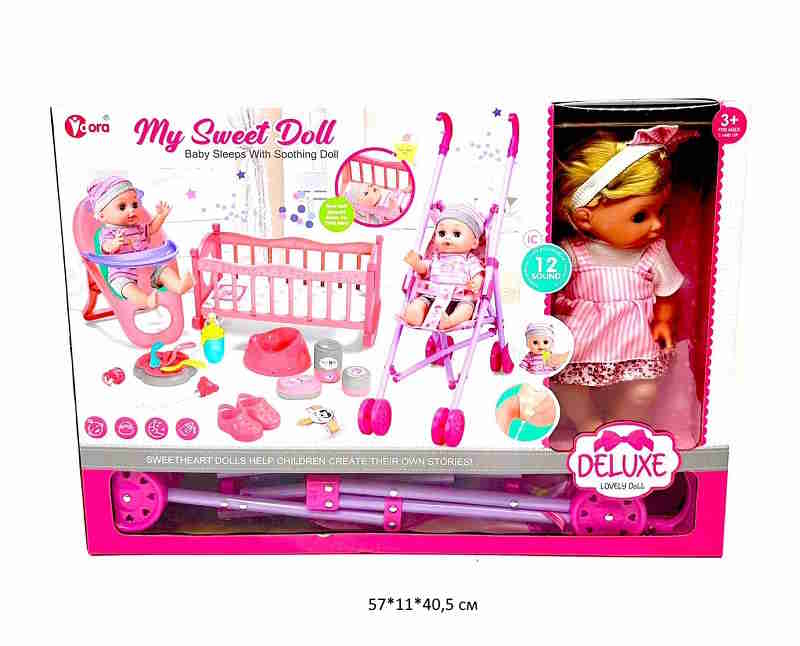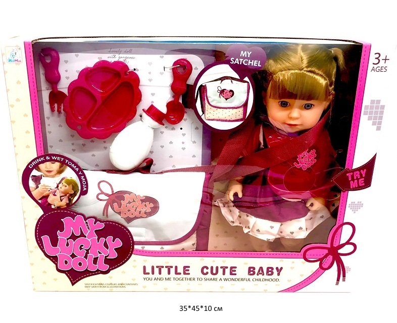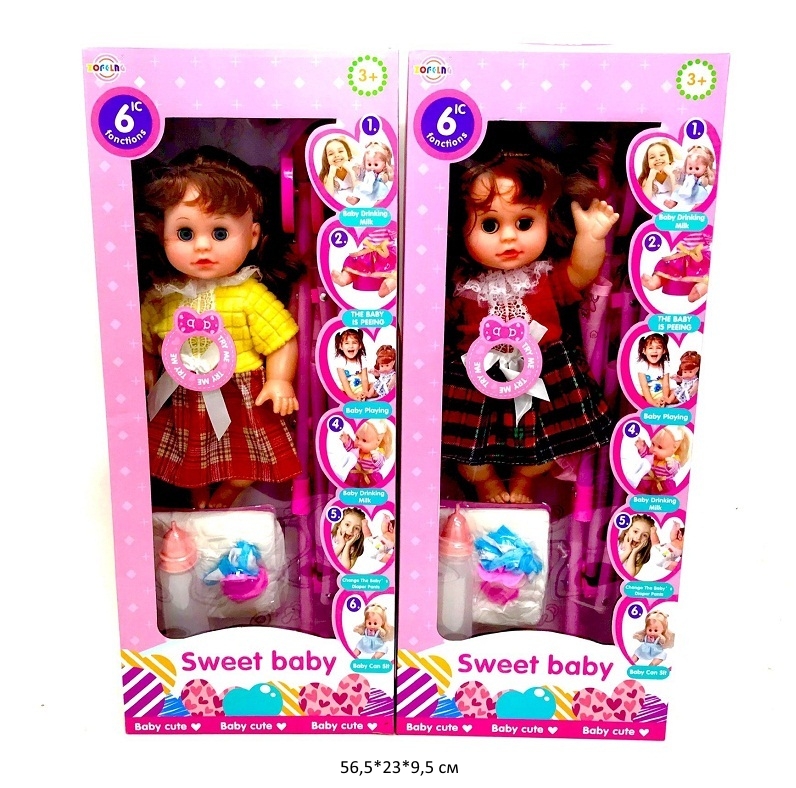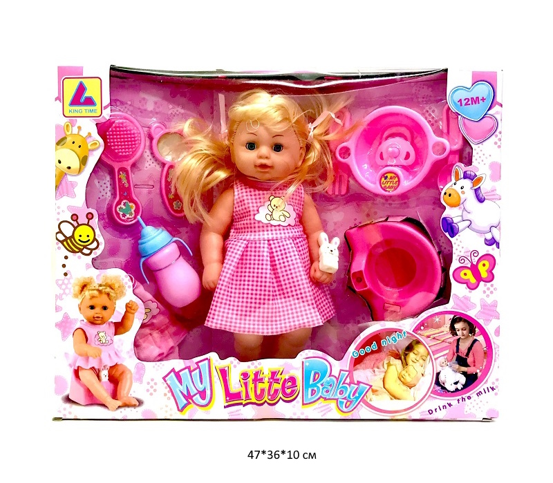 - Кукла арт. K006-9 С коляской, аксессуарами в кор._×Кукла арт. K006-9 С коляской, аксессуарами в кор._Игровой набор «Милая малышка» поможет девочке в ходе игры попробовать себя в роли настоящей мамы. В комплекте: кукла, горшок, бутылочка, подгузник, коляска.