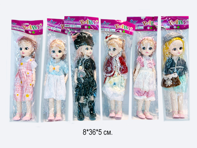 Размер упаковки: 36 х 8 х 5 см470 руб. - Кукла арт. JY36 Шарнирная в ассортименте в пак.•×Кукла арт. JY36 Шарнирная в ассортименте в пак.•Миловидная кукла на шарнирах. Все суставы подвижны. Руки ноги легко сгибаются. Кукла легко меняет положение рук, кистей и ног и поворачивает голову.