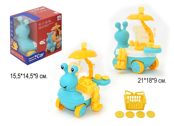 ПУ_Минимаркет арт. 181A HJ Сладости 8 предметов в кор. 15,5*9*14,5Яркий игровой магазин сладостей из 28 предметов - отличный подарок и для мальчика, и для девочки! Тележка с вкусняшками создаст атмосферу настоящего магазина сладостей у вас дома! В игровой набор входит игрушечная тележка в виде очаровательной улитки, большой выбор игрушечных продуктов, касса, корзинка для покупок а также игрушечные монеты.