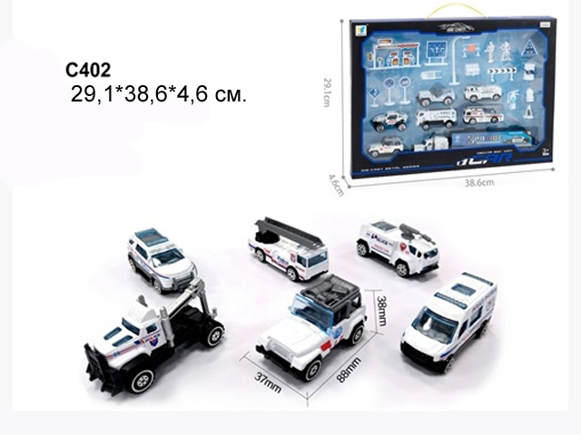 Набор машин арт. 402C" Спецтехника метал. 6 шт. в кор. 29,1*38,6*4,6 /36шт.//бл.18/Набор машин арт. 402C" Спецтехника метал. 6 шт. в кор. 29,1*38,6*4,6 /36шт.//бл.18/