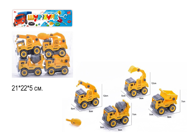 Набор машин арт. 8226-3" Строит. техника 4 шт. в пакете 21*22*5 /192шт.//бл.96/Набор машин арт. 8226-3" Строит. техника 4 шт. в пакете 21*22*5 /192шт.//бл.96/