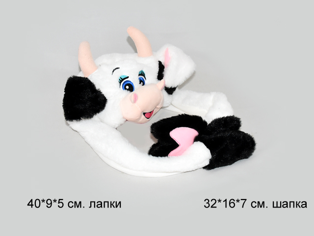 - им Коровка-шапка арт. 2021-1 Двиг. ушами в пак._×им Коровка-шапка арт. 2021-1 Двиг. ушами в пак._Забавная шапка, выполненная в виде зверюшки с длинными лапками, внутрь которых встроены воздушные помпы, поэтому при нажатии на лапки ушки начинают двигаться (из-за потока воздуха).